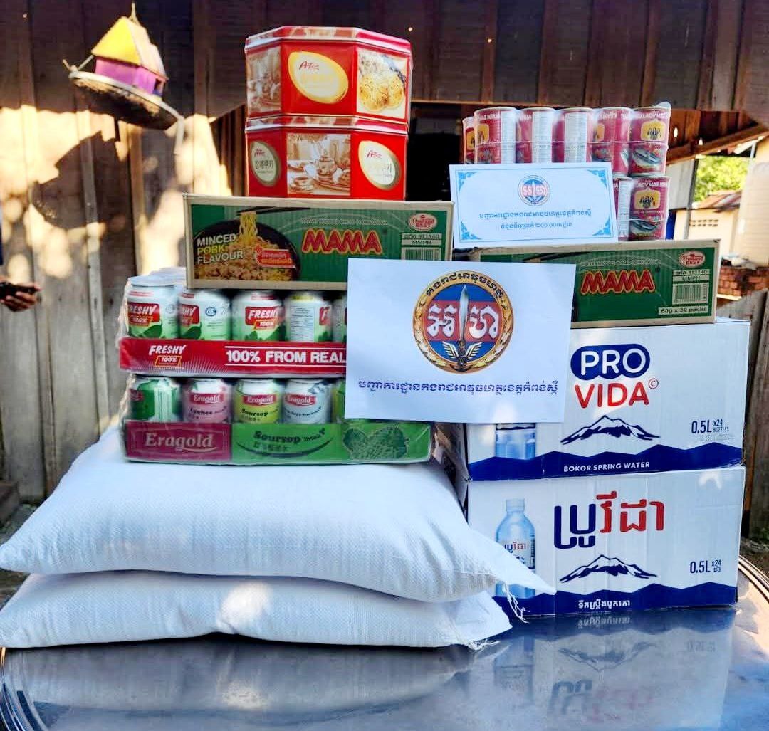 ក្នុងឱកាសសួរសុខទុក្ខនោះដែរ លោកឧត្តមសេនីយ៍ត្រី មេបញ្ជាការ បានឧបត្ថម្ភនូវថវិកាចំនួន ៦៩៣.០០០រៀល និងគ្រឿងឧបភោគបរិភោគមាន (អង្ករ ០២ប៉ាវ , ទឹកសុទ្ធ ០២កេស , មីម៉ាម៉ា ០២កេស ,ទឹកផ្លែឈើ ០២កេស ,ត្រីខ ០២យួរ និងនំចំនួន ០២ប្រអប់។