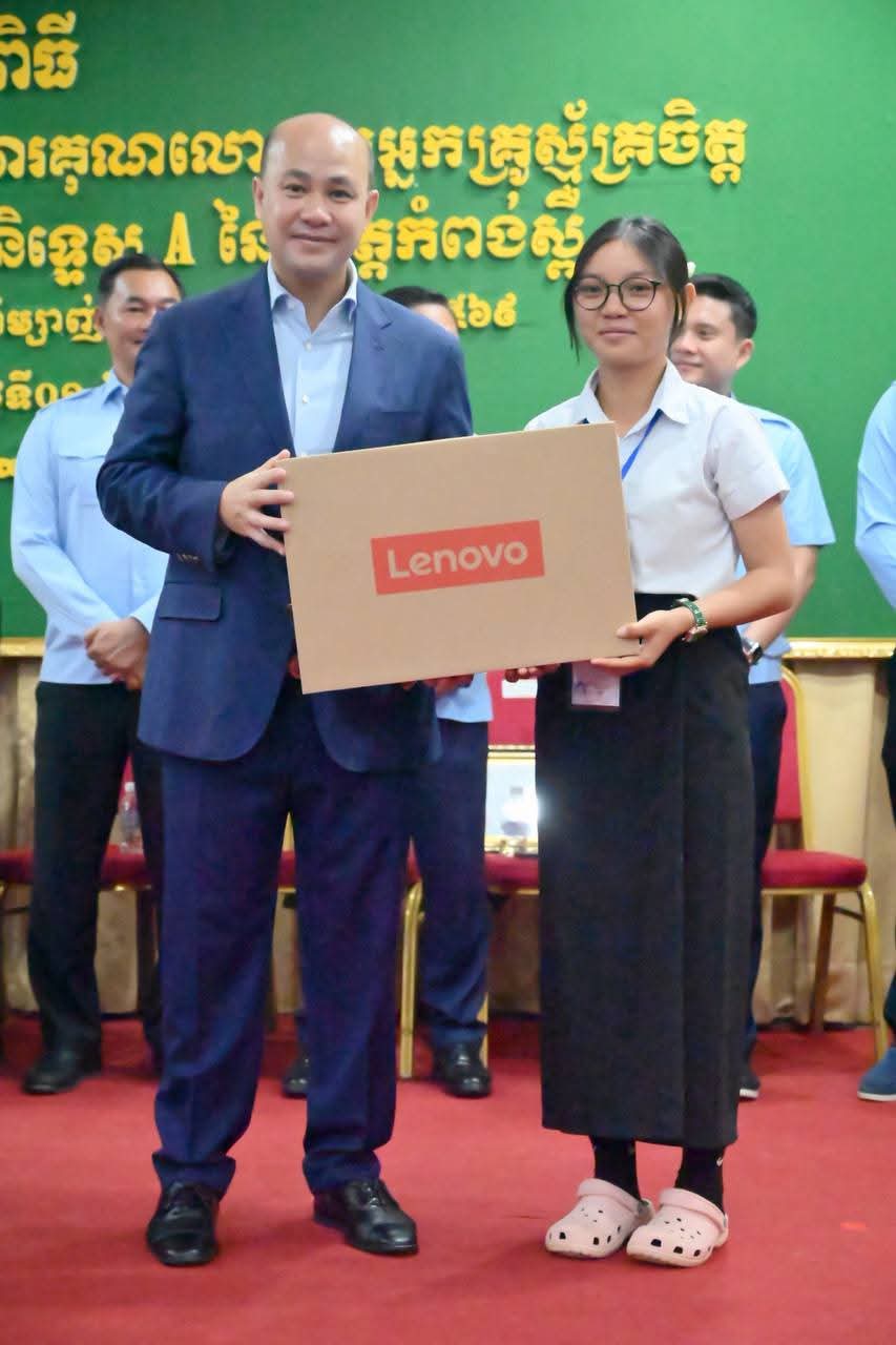 ក្នុងឱកាសសំណេះសំណាល ឯកឧត្តមឧបនាយករដ្ឋមន្រ្តី ក៏បាន ផ្តល់នូវរង្វាន់លើកទឹកចិត្តដល់សិស្សនិទ្ទេស A ទាំង ៧៩នាក់ នូវ Computer ១នាក់ ចំនួន ១គ្រឿង និងលិខិតថ្លែងអំណរគុណ ដល់លោកគ្រូ អ្នកគ្រូ និងថវិកាមួយចំនួនផងដែរ៕