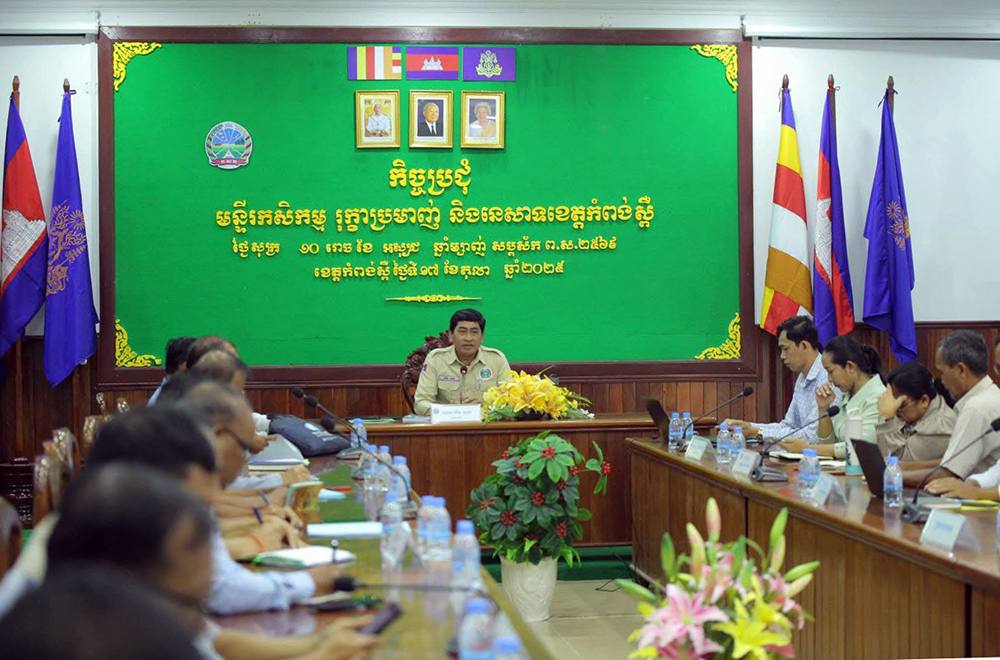 ខេត្តកំពង់ស្ពឺ÷ នៅថ្ងៃទី១៧ ខែតុលា ឆ្នាំ២០២៥-លោក យឹម ណន ប្រធានមន្ទីរកសិកម្ម រុក្ខាប្រមាញ់ និងនេសាទខេត្តកំពង់ស្ពឺ នាថ្ងៃសុក្រ ទី១៧ ខែតុលា ឆ្នាំ២០២៥ បានដឹកនាំកិច្ចប្រជុំស្តីពី “ការបូកសរុបលទ្ធផលការងារកសិកម្ម រុក្ខាប្រមាញ់ និងនេសាទប្រចាំខែតុលា និងលើកទិសដៅការងារសម្រាប់ខែវិច្ឆិកា ឆ្នាំ២០២៥ ដោយមានការចូលរួមពីថ្នាក់ដឹកនាំខណ្ឌរដ្ឋបាល និងគ្រប់ការិយាល័យជំនាញ ថ្នាក់ឃុំ សង្កាត់ ស្រុក ក្រុងទូទាំងខេត្តកំពង់ស្ពឺ។